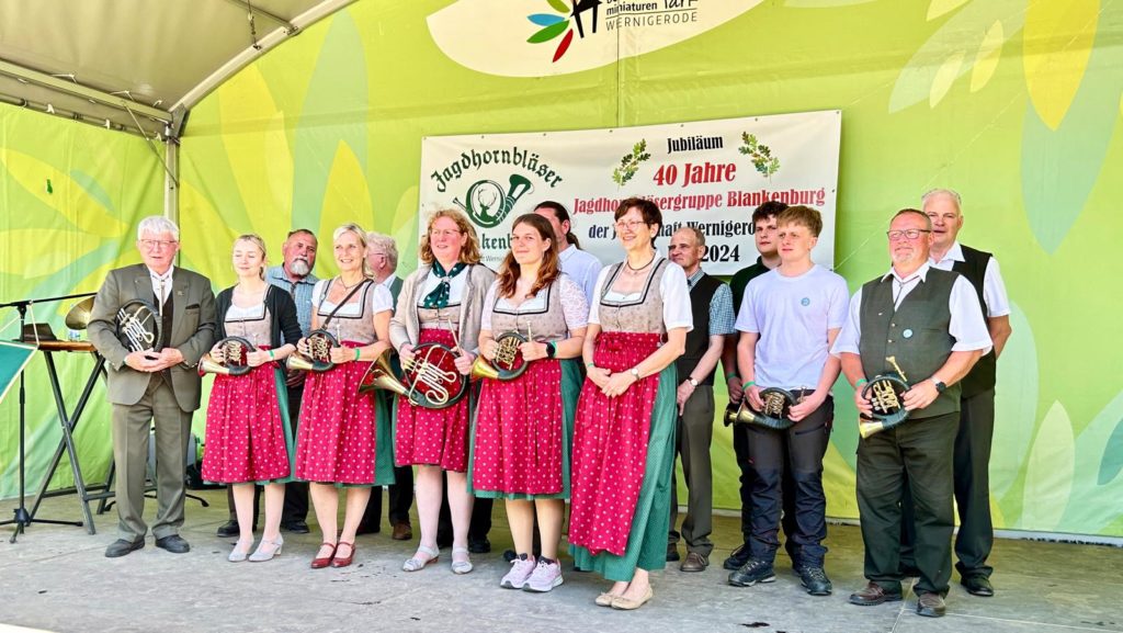 Am Sonntag, dem 12. Mai 2024 feierte die Jagdhornbläsergruppe Blankenburg der Jägerschaft Wernigerode e.V. ihr 40jähriges Bestehen. Hierzu hatten die Aktiven einige, befreundete Jagdhornbläsergruppen aus Sachsen-Anhalt in den Bürgerpark nach Wernigerode eingeladen.