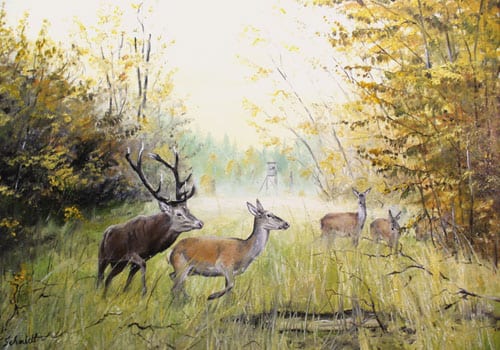 Eine besondere Art das jagdliche Brauchtum zu pflegen bietet uns unser Jagd- und Tiermaler Frank Schmidt aus Langeln. So findet man in seinem Atelier wunderschöne Bilder, gemalt in Öl und viele Grafiken.